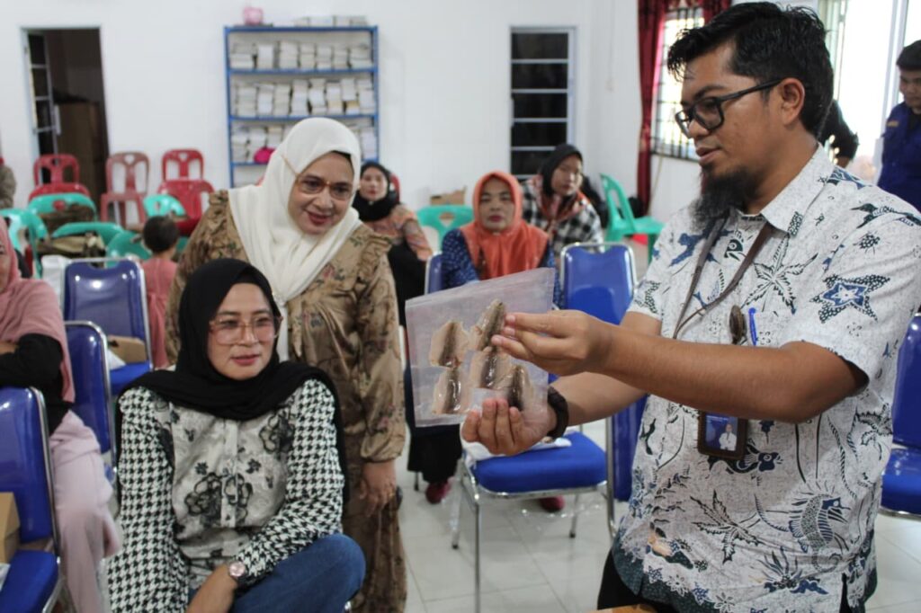 Dalam pelaksanaannya, peserta pelatihan—yang merupakan para pelaku UMKM pengolah hasil perikanan di Desa Malang Rapat—mendapatkan berbagai materi penting, seperti strategi pengelolaan bahan baku, efisiensi produksi, pengendalian mutu, hingga inovasi dalam pengemasan produk. Peserta juga diperkenalkan pada konsep nilai tambah produk agar hasil olahan perikanan lokal memiliki daya tarik lebih tinggi di pasar, baik di tingkat lokal, regional, maupun nasional. Ketua kegiatan PKM, Widya Septyati, S.P., M.Si., dalam sambutannya menyampaikan bahwa kegiatan ini merupakan bagian dari upaya kampus dalam memberikan pendampingan berkelanjutan kepada masyarakat pesisir, sehingga mereka dapat lebih siap menghadapi tantangan pasar yang semakin kompetitif.