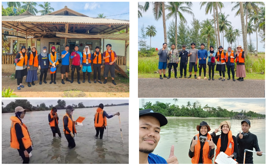 Kegiatan pengambilan data lapangan dilaksanakan selama dua hari, yakni pada 4–5 Oktober 2025 di perairan dangkal Desa Pengudang dan kegiatan sosialisasi dilaksanakan pada 5 Desember 2025 di Balai Pertemauan Desa Pengudang. Penelitian berfokus pada dua parameter utama: vegetasi lamun dan kualitas perairan. Sebanyak 59 titik sampling digunakan untuk pengamatan lamun yang membentang hingga ±322 meter dari garis pantai dengan kedalaman sekitar 1–3 meter pada tahun 2025. Sementara itu, tujuh titik pengamatan ditetapkan untuk pengukuran parameter kualitas perairan. Sebanyak 210 titik sebaran Habitat bentik yang telah dilakukan pada tahun 2023.